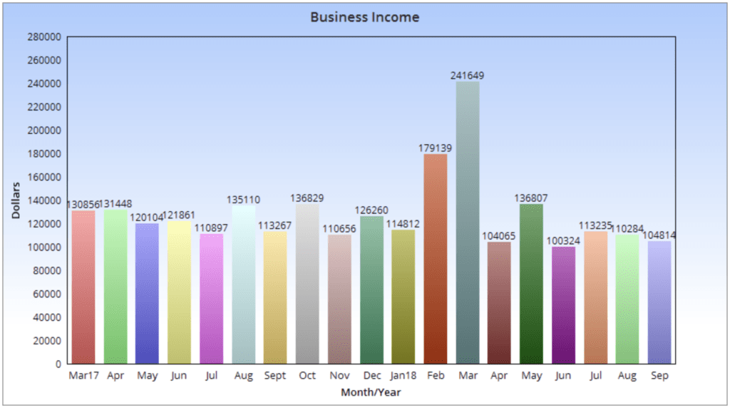 How was business income in September of 2018?