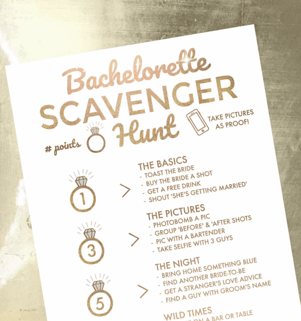 1. Bachelorette party scavenger hunt