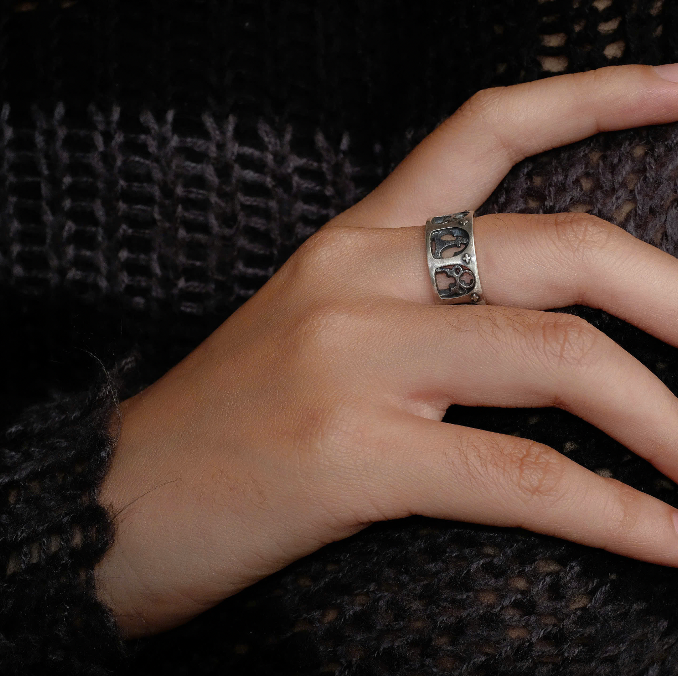 FRONT Chess Pieces Silver Ring